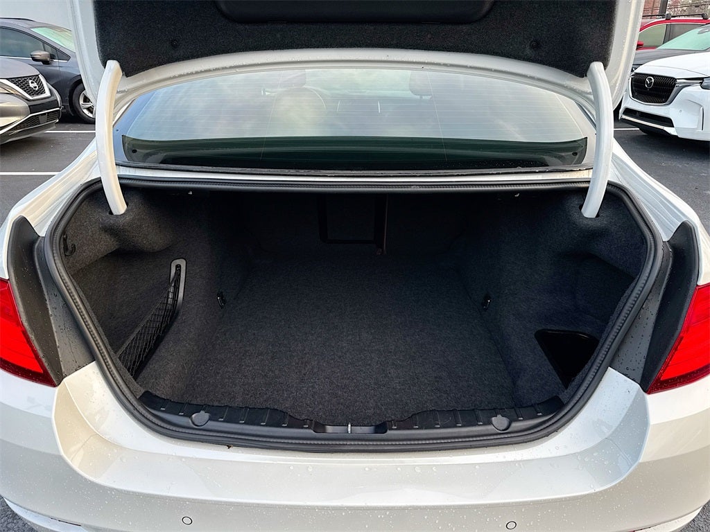 Premium interior features include leather seating, heated front seats, lumbar support, power front seats with memory for driver and passenger, leather and metal look shift lever, leather and metal look steering wheel, dual zone climate control, integrated navigation system with voice activation, BMW Assist eCall, ConnectedDrive Services, BMW TeleServices, enhanced USB and Bluetooth®, SiriusXM with one year plan, real time traffic, power tilt and telescoping steering wheel, HomeLink garage door transmitter, full floor console with locking storage, refrigerated console compartment, multiple twelve volt outlets, rear armrest with storage, ambient lighting, power trunk release, carpeted floor mats, cargo concealed storage, auto dim interior mirror, and smart device integration.