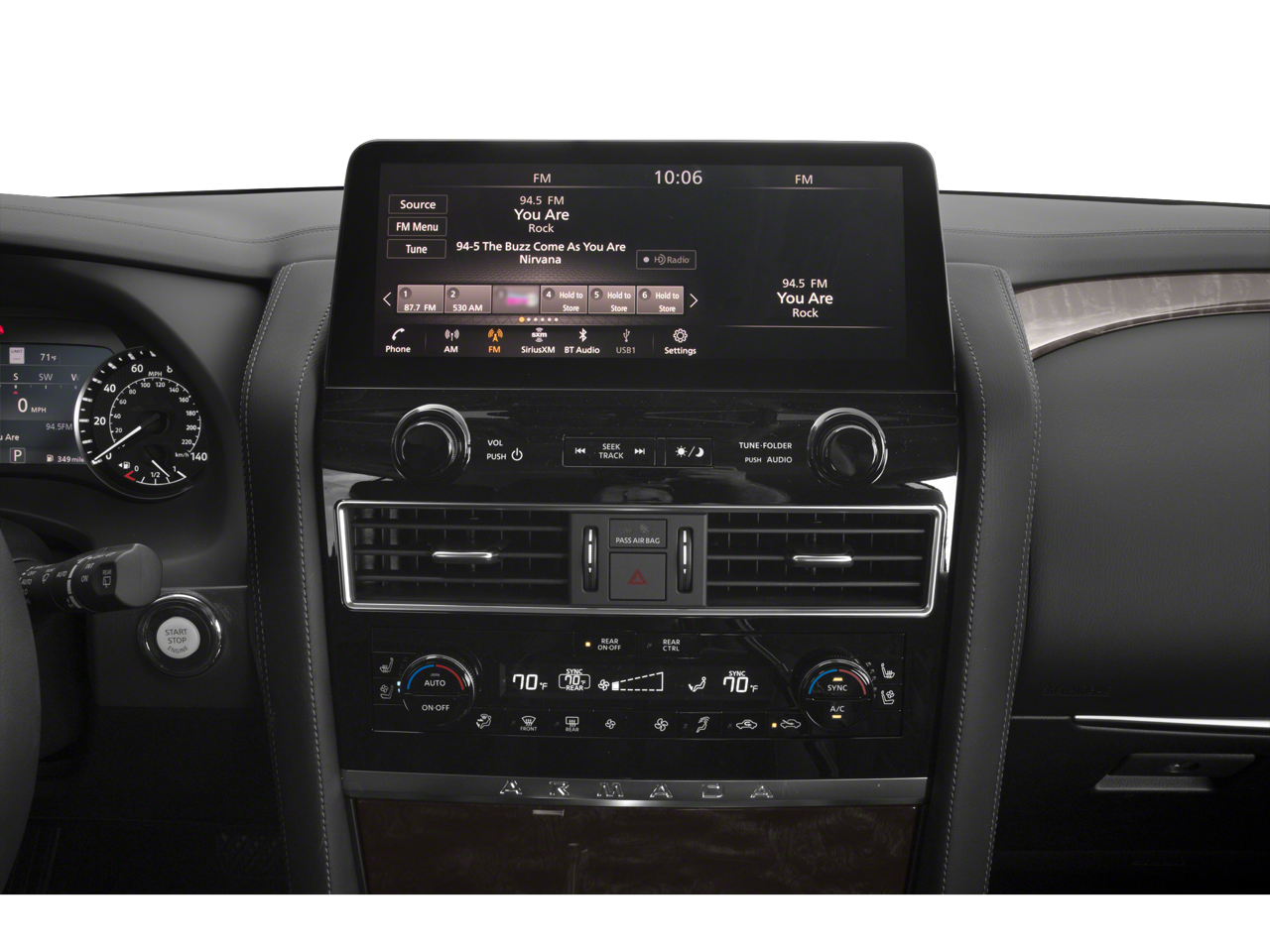 - Radio: NissanConnect w/SiriusXM -inc: 13-speaker Bose audio system, wireless Apple CarPlay, Android Auto, Nissan door to door navigation, 12.3" color display w/multi-touch control, SiriusXM Traffic and Travel Link w/three month complimentary trial access, NissanConnect Services powered by SiriusXM, Bluetooth hands-free phone system, hands-free text messaging assistant and Wi-Fi hotspot