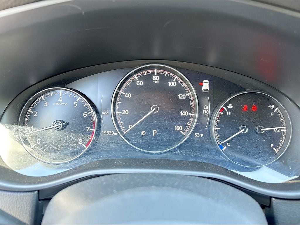 Safety comes standard with an extensive suite of advanced features including a backup camera, blind spot monitoring, rear cross traffic alert, lane departure warning, lane keep assist, Mazda radar cruise control with stop and go, smart brake support, driver attention alert, traction control system, dynamic stability control, ABS with electronic brake force distribution and brake assist, tire pressure monitoring system, advanced dual front airbags, front side impact airbags, front and rear side curtain airbags, front knee airbags, LATCH child safety seat anchors, anti theft engine immobilizer, and five passenger three point safety belts for added peace of mind on every trip.